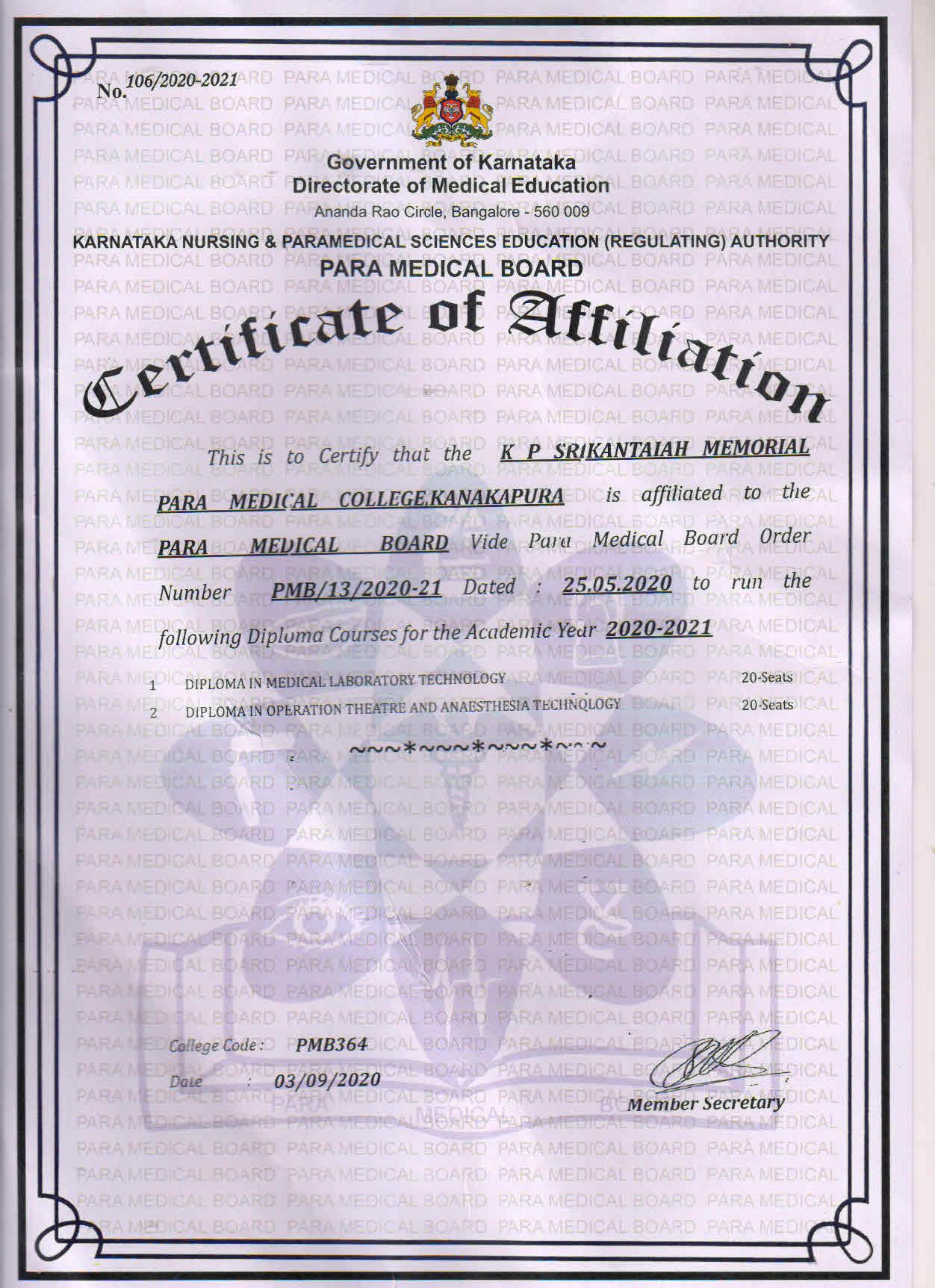 RECOGNISED BY PCI, PMB AND GOVERNMENT OF KARNATAKA