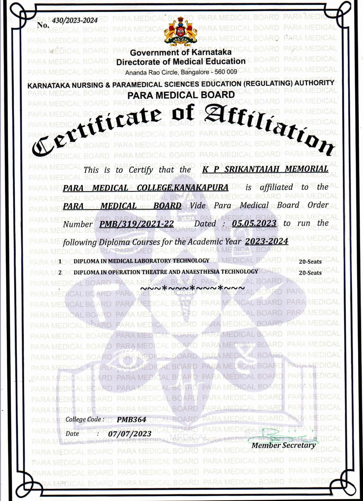 RECOGNISED BY PCI, PMB AND GOVERNMENT OF KARNATAKA