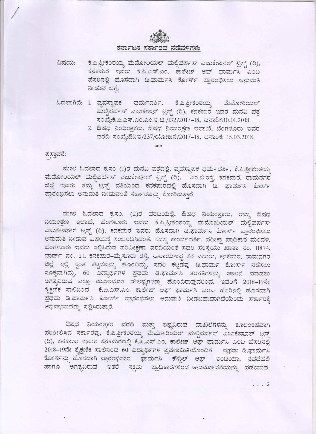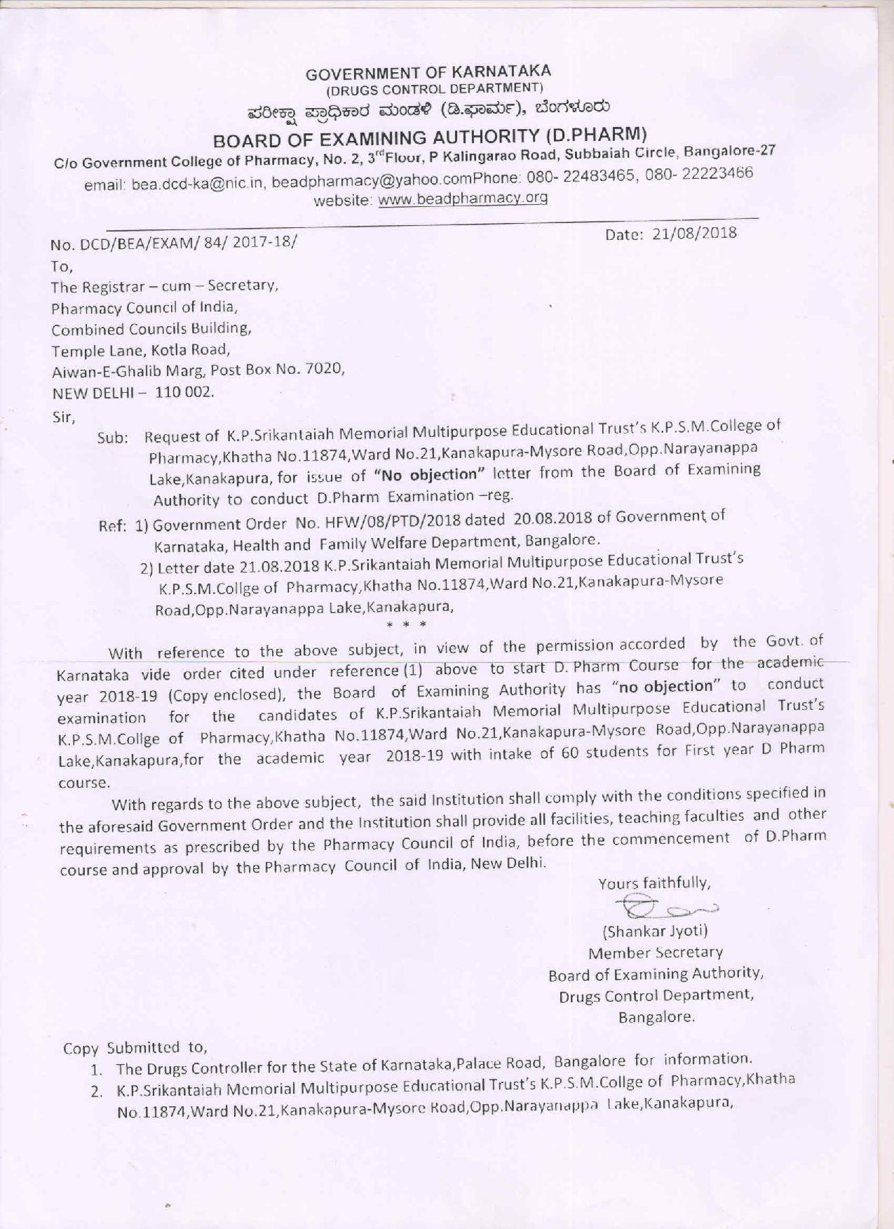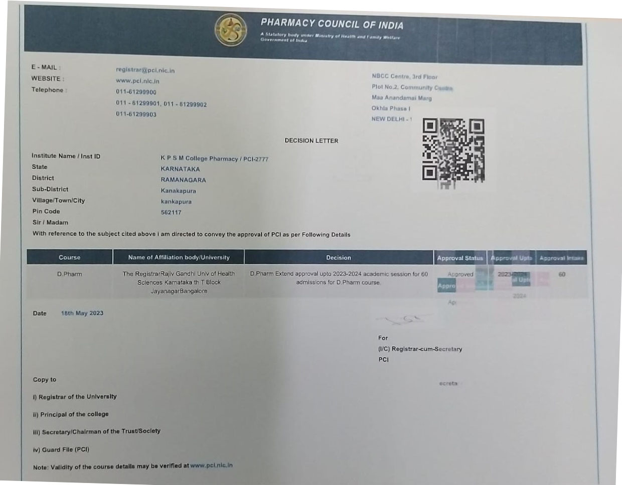 RECOGNISED BY PCI, PMB AND GOVERNMENT OF KARNATAKA